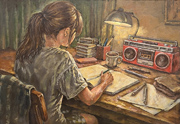 紙に油彩