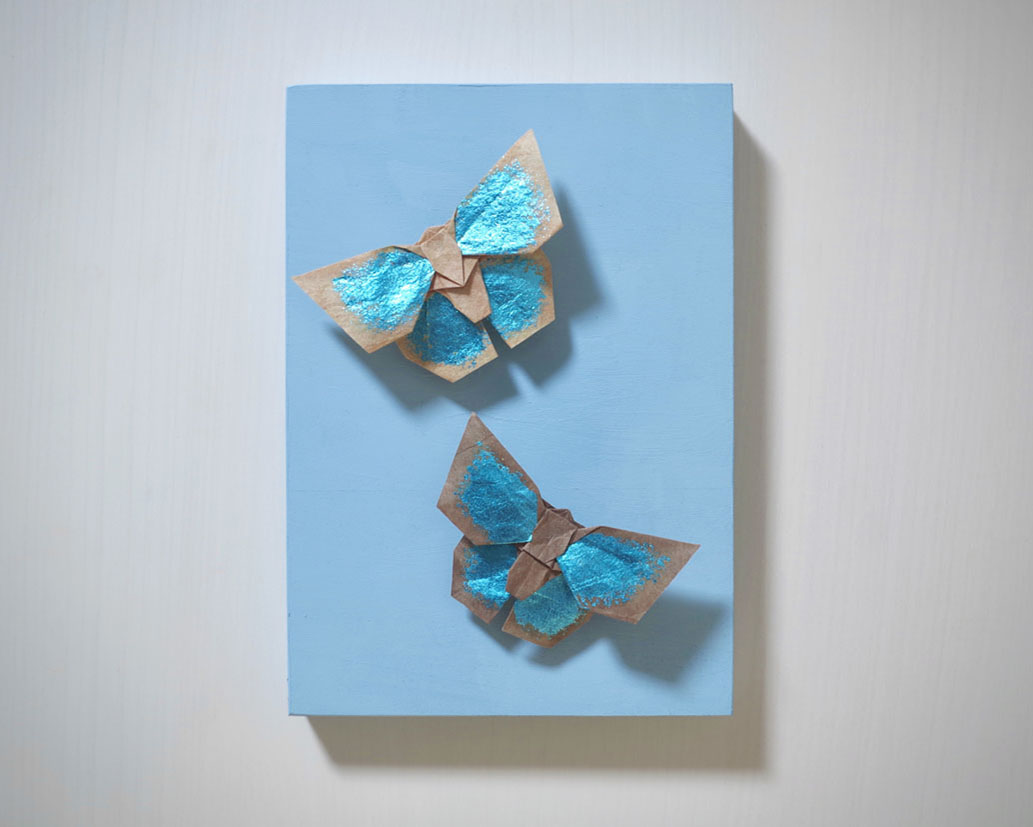 不切正方形一枚折り、色箔
